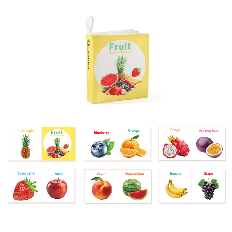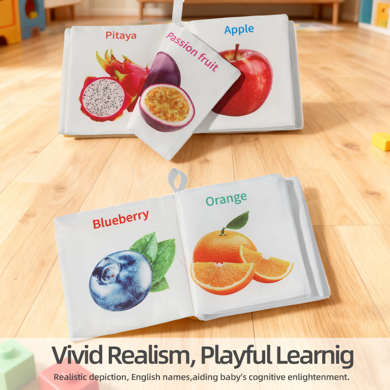 A Fantastic Early Education Tool for Fruit Recognition! This Six-Page Fabric Book Allows for Independent Exploration with Tear-Resistant Soft Material, Vibrant Fruit Illustrations, And Interactive Touch-And-Flip Learning. It Stimulates Curiosity