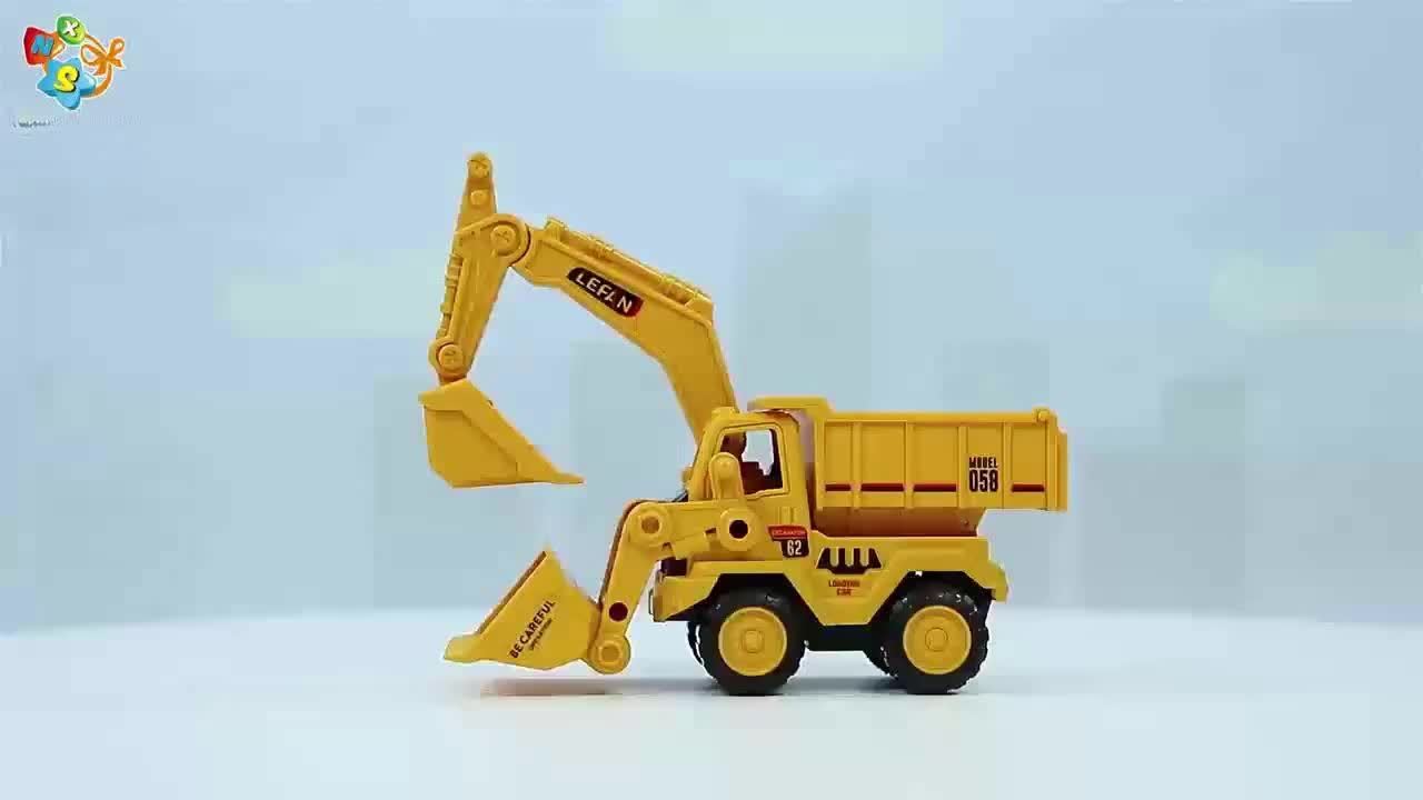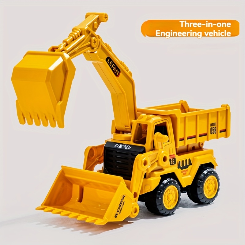Yellow Inertia Skid Steer Excavator Toy Truck with Dump Bed, Engineering Vehicle Model Toy Made of ABS Material, No Battery Required, Suitable for Boys and Girls, Great Birthday Gift Option